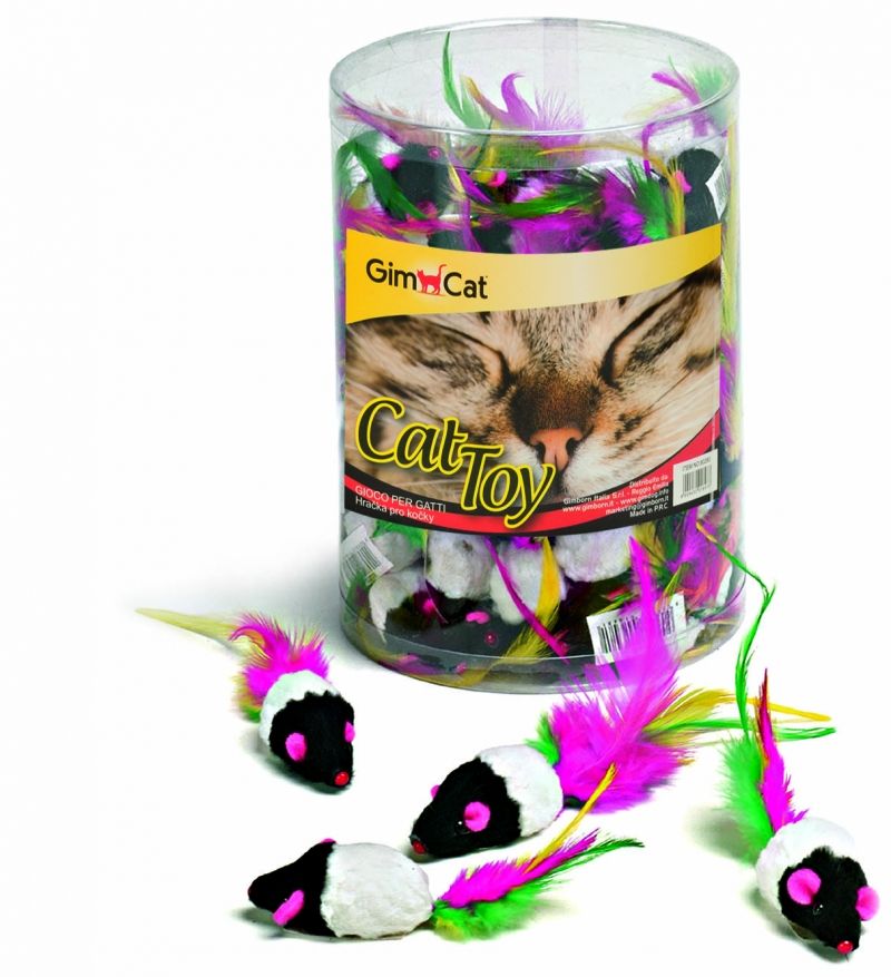 GimCat Играчка за котка - цветна мишка с пищялка