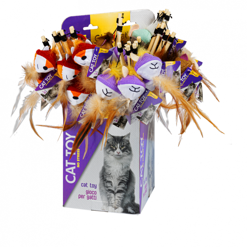 GimCat Играчка за котка -  въдица с глава с шапка и перо