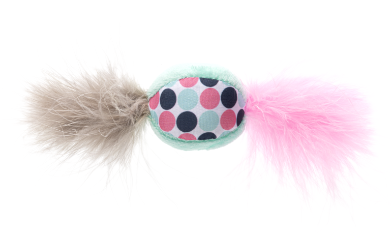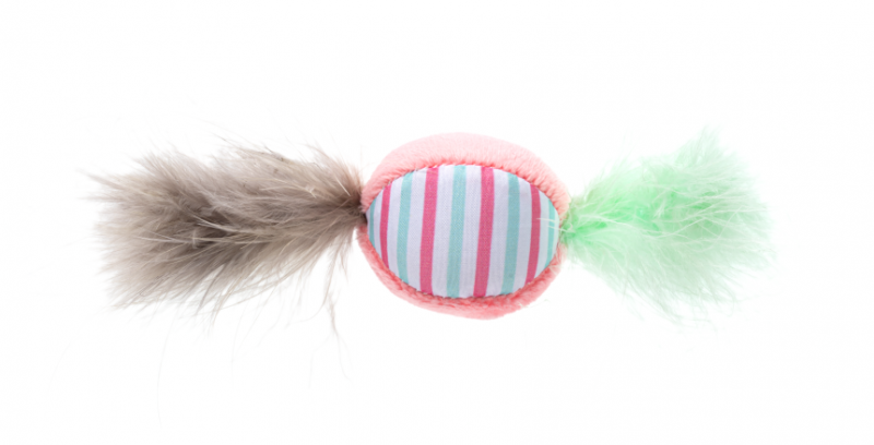 GimCat Играчка за котка DREAM CANDY, плюшена топка - бонбон с пера, розов цвят