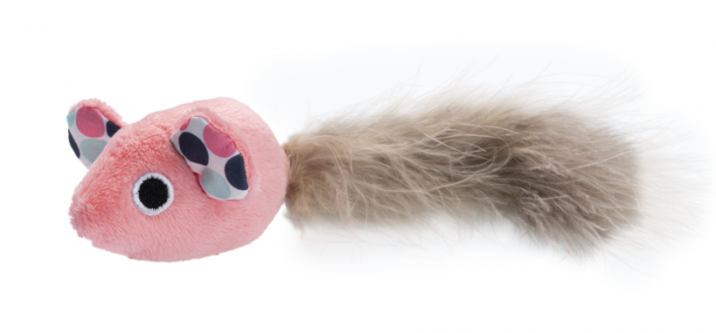 GimCat Играчка за котка DREAM TAIL, плюшена мишка с опашка от пера, розов цвят