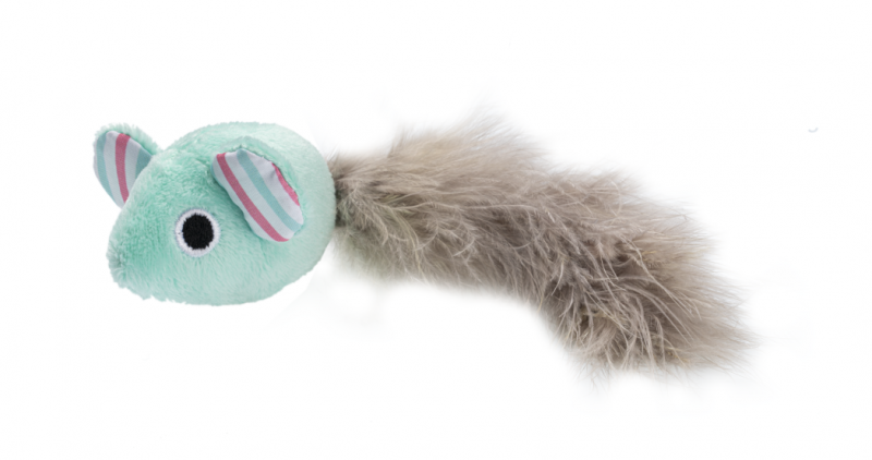 GimCat Играчка за котка DREAM TAIL, плюшена мишка с опашка от пера, светлосин цвят