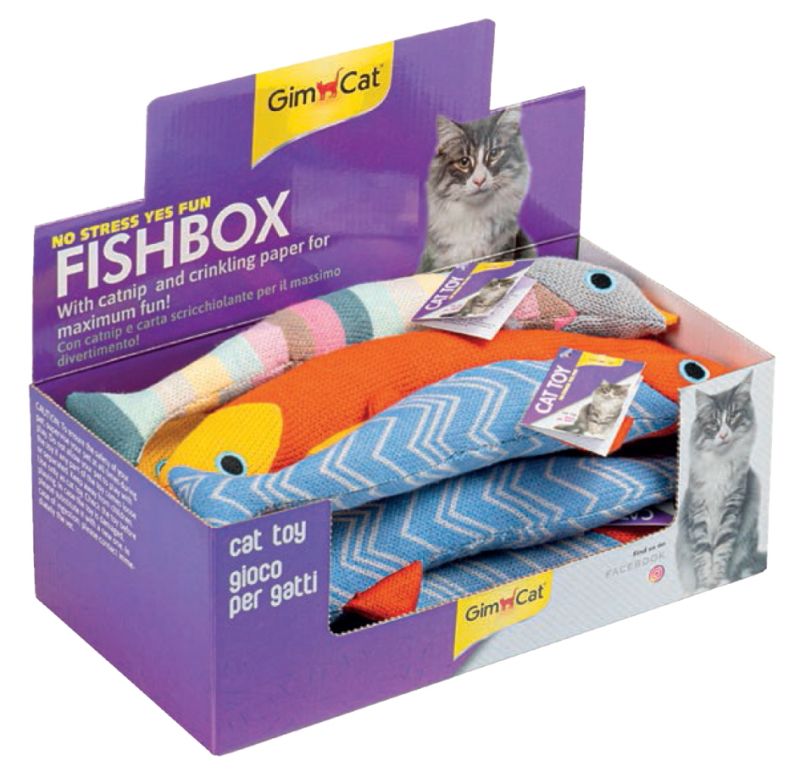 Gimcat® FISH BOX Играчка за котка - шумоляща плюшена риба с котешка трева 1 бр.