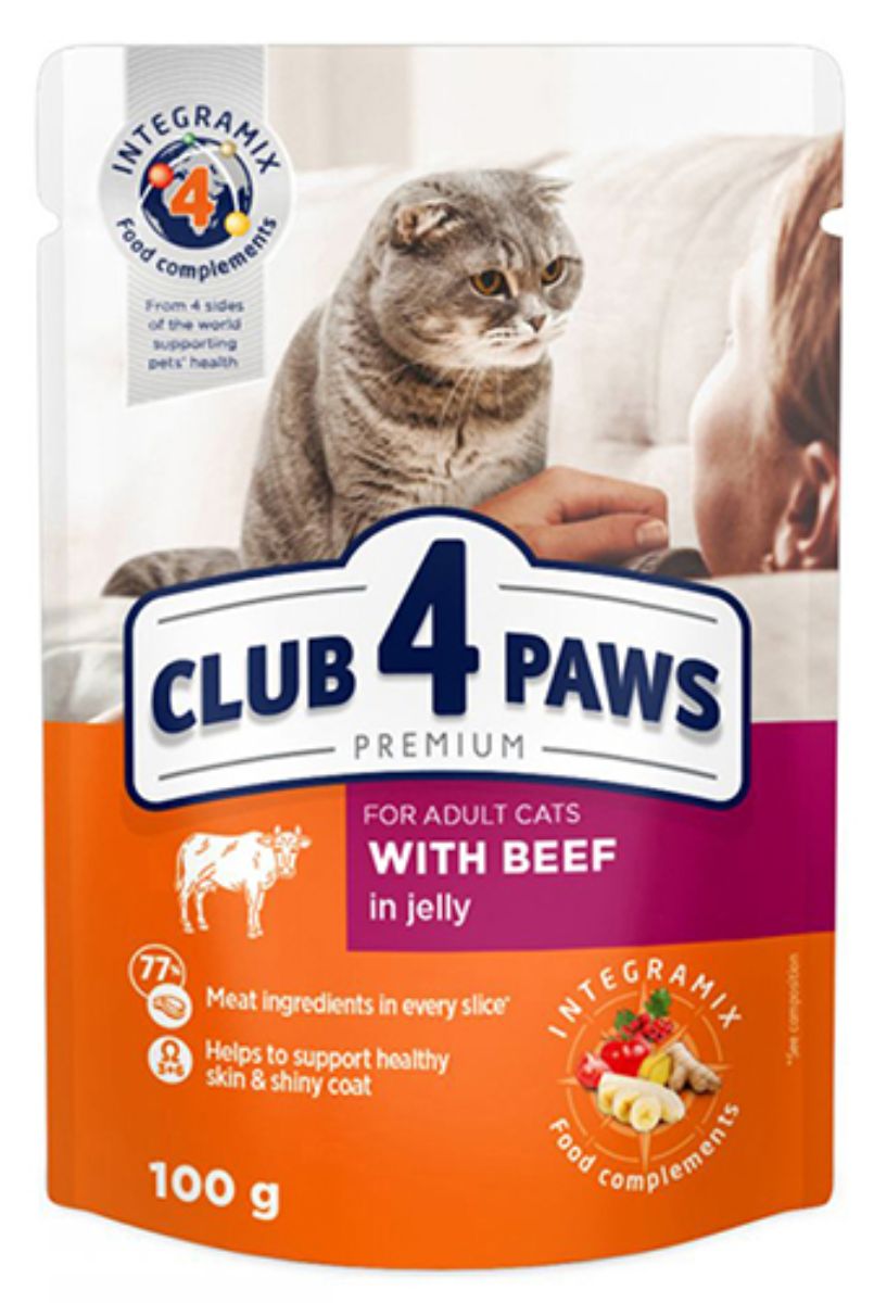 Club 4 Paws Pouch Premium Adult Cat with Beef in Jelly 100гр. - Пълноценна консервирана храна за възрастни котки "с Телешко в желе"