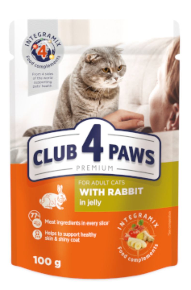 Club 4 Paws Pouch Premium Adult cat with Rabbit in Jelly 100гр. - Пълноценна консервирана храна за възрастни котки със Заешко в желе