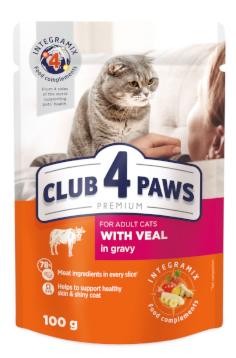 Club 4 Paws Pouch Premium Adult Cat with Veal in Gravy 100гр. - Пълноценна консервирана храна за възрастни котки с Телешко в сос