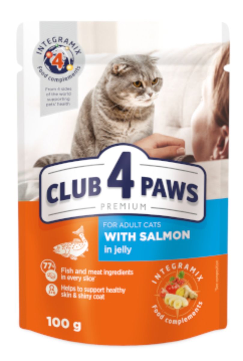 Club 4 Paws Pouch Premium Adult Cat with Salmon in Jelly 100гр. - Пълноценна консервирана храна за възрастни котки със Сьомга в желе