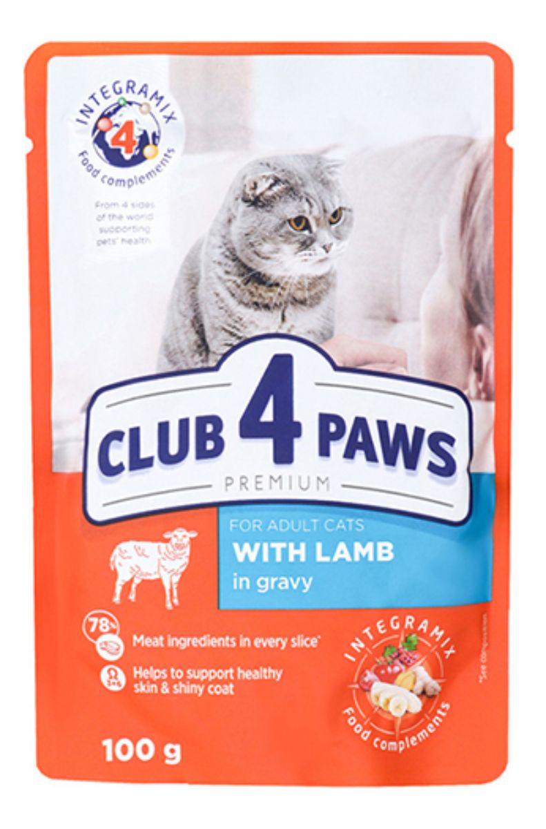 Club 4 Paws Pouch Premium Adult cat with Lamb in Gravy 100гр. - Пълноценна консервирана храна за възрастни котки с Агнешко в сос