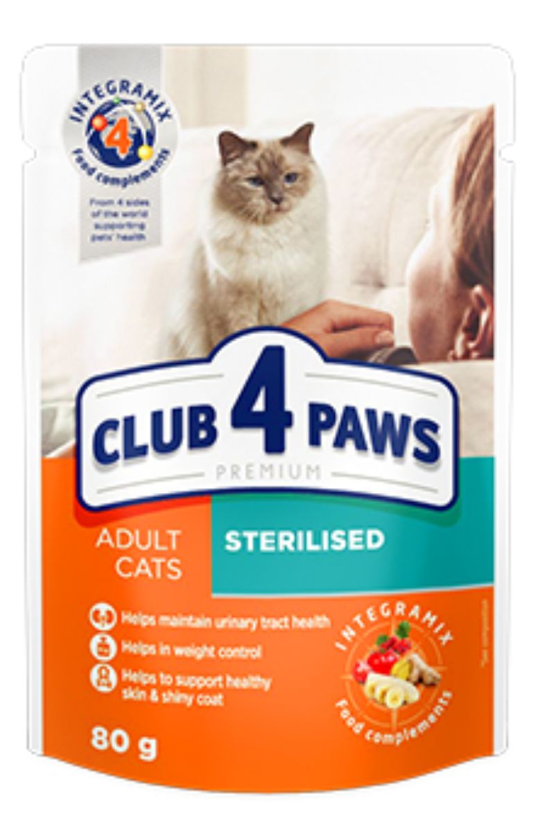 Club 4 Paws Pouch Premium Adult Cat Sterilised (0.80 гр. 24pcs) - Пълноценна консервирана храна за възрастни стерилизирани котки
