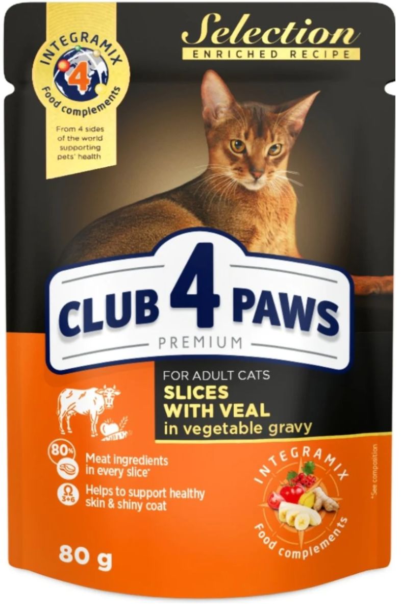 Slices with Veal in Vegetable Gravy, Club 4 Paws 80гр. - Парчета с телешко в зеленчуков сос. Пълноценна консервирана храна за възрастни котки