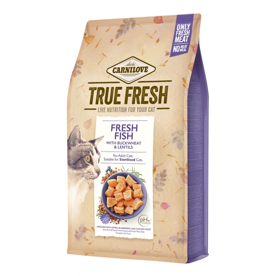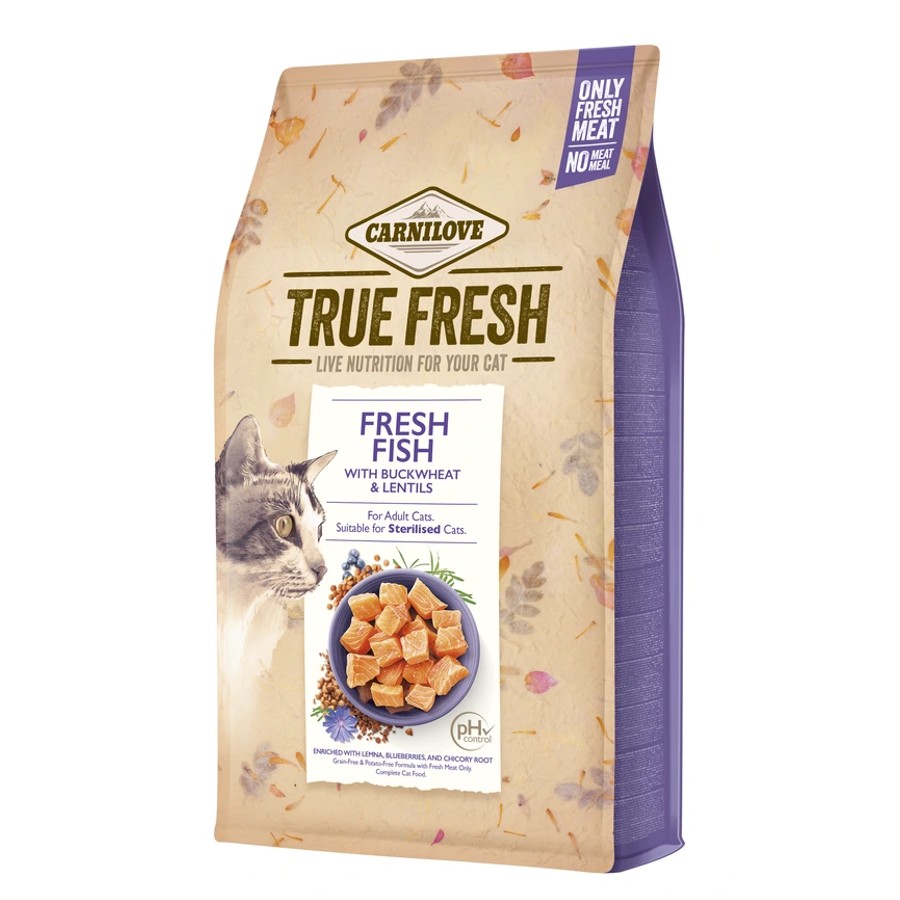 Ултра премиум суха храна Carnilove TRUE FRESH Cat Fish 4.8 kg със 70% истинска, прясна риба, обогатена с червена леща, мащерка и боровинки