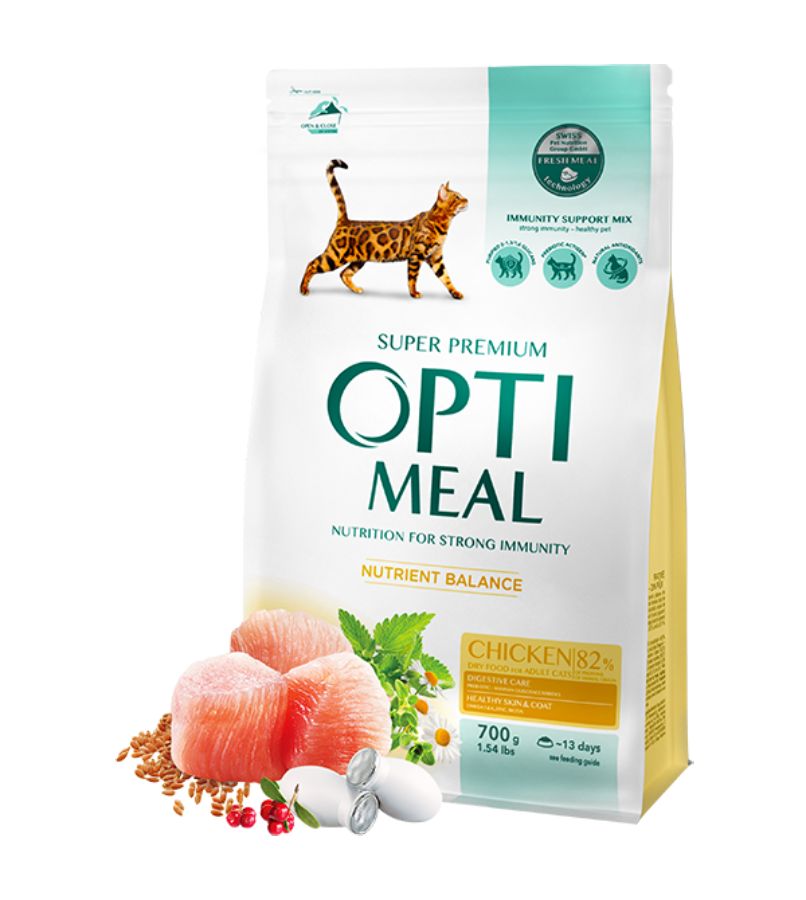 Optimeal Cat Adult with Chicken 700 гр. - Пълноценна суха храна за възрастни котки с пилешко