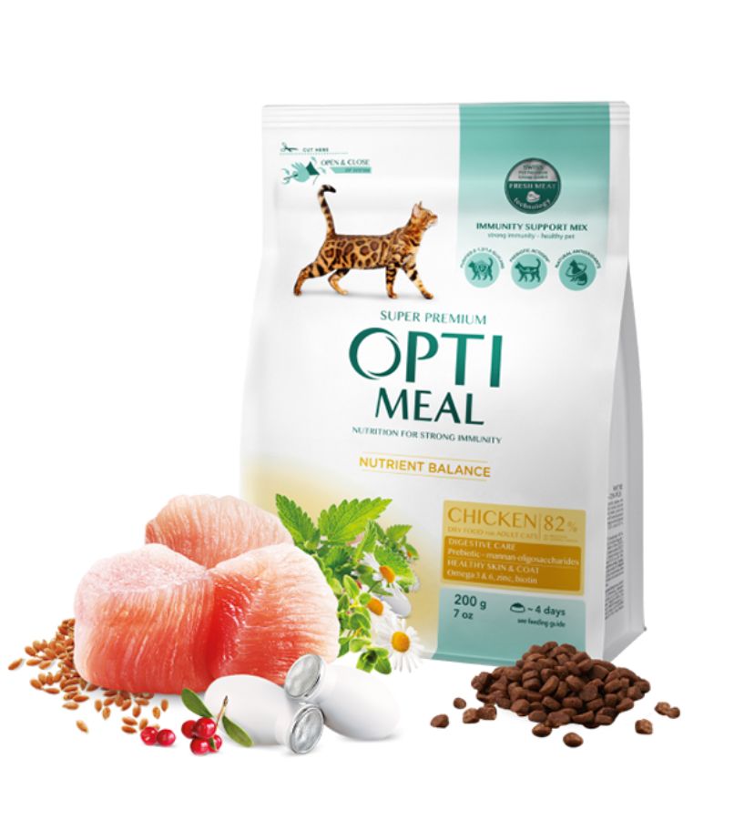 Optimeal Cat Adult with Chicken 200 гр. - Пълноценна суха храна за възрастни котки с пилешко