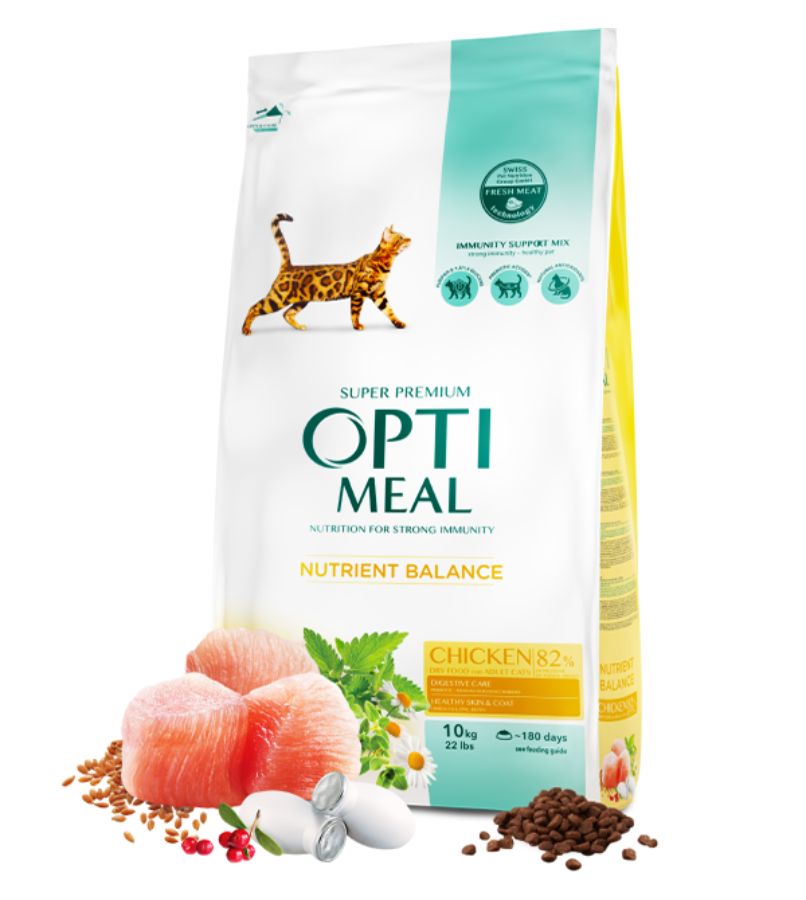 Optimeal Cat Adult with Chicken 10 кг - Пълноценна суха храна за възрастни котки с пилешко