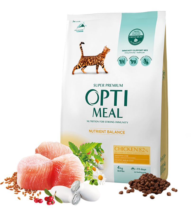 Optimeal Cat Adult with Chicken 4 кг - Пълноценна суха храна за възрастни котки с пилешко