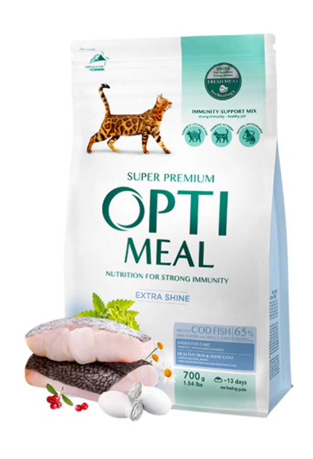 Optimeal Cat Adult with Cod Fish 700 гр. - Пълноценна суха храна за възрастни котки с високо съдържание на риба Треска