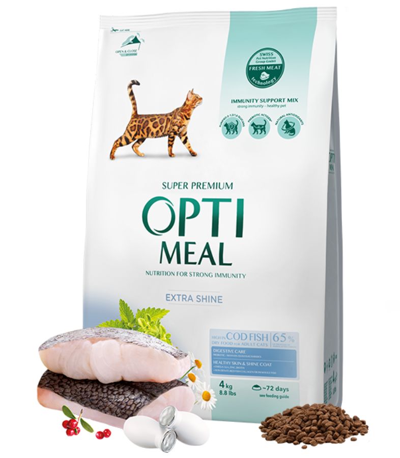 Optimeal Cat Adult with Cod Fish 4 кг - Пълноценна суха храна за възрастни котки с високо съдържание на риба Треска