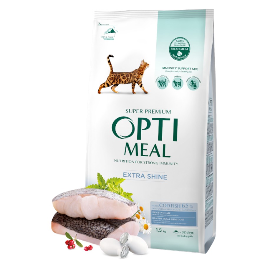 Optimeal Cat Adult with Cod Fish 1.5 кг - Пълноценна суха храна за възрастни котки с високо съдържание на риба Треска