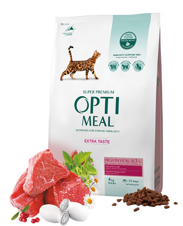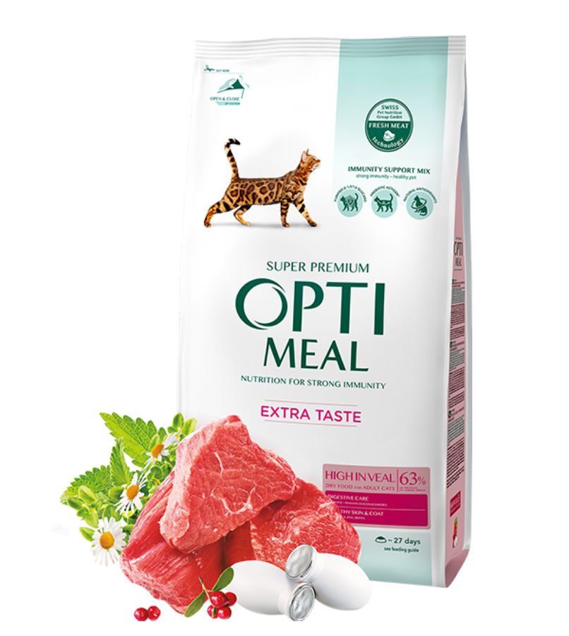 Optimeal Cat Adult with Veal 4 кг - Пълноценна суха храна за възрастни котки с високо съдържание на телешко месо