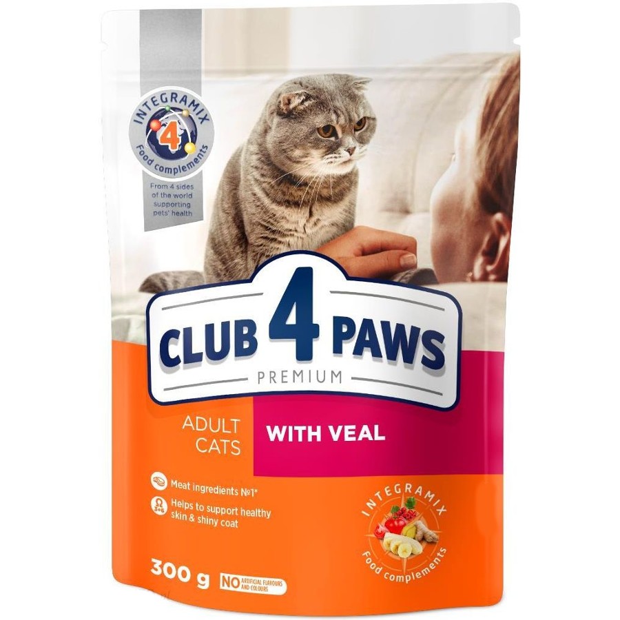CLUB 4 PAWS Cat Adult Veal 300гр. - Пълноценна суха храна за възрастни котки с телешко