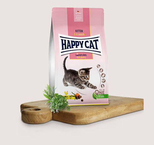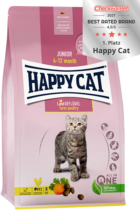 Суха храна за котета Happy Cat Young Junior Farm Poultry-0.3кг-вкусна храна за котенца с пилешко месо