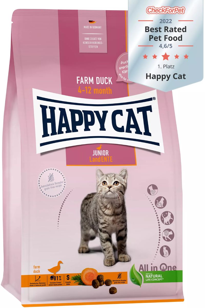 Happy Cat Young Junior Farm Duck (1.3кг)- Храна за котки с патешко, моркови, картофи. Без зърнени продукти