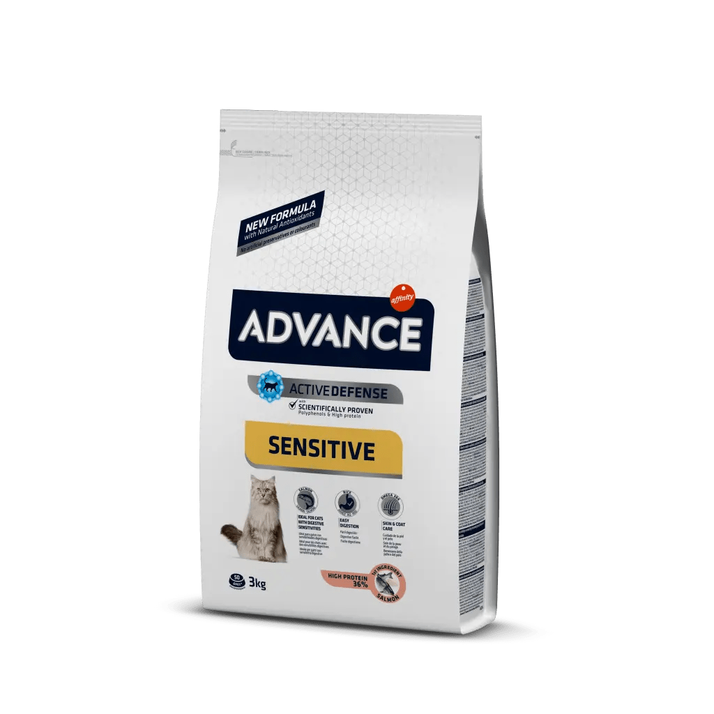 Суха храна за котки Advance Cat Adult Sensitive-3кг със сьомга и ориз за чувствителен стомах