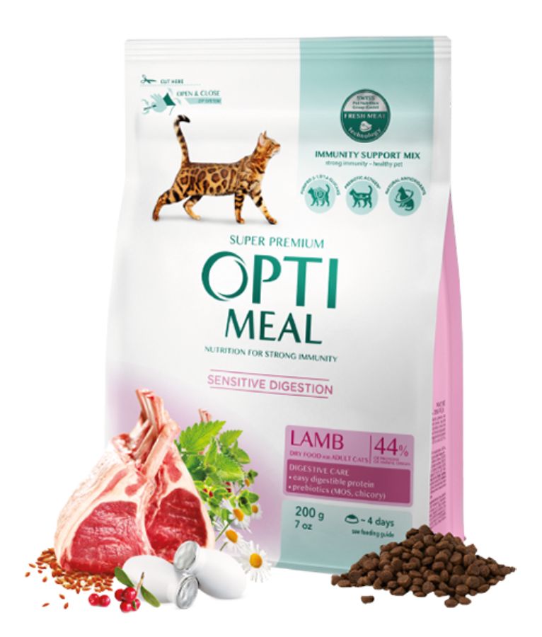 Optimeal Cat Adult Digestive/Lamb 200 гр. - Агнешко за възрастни котки с чувствително храносмилане