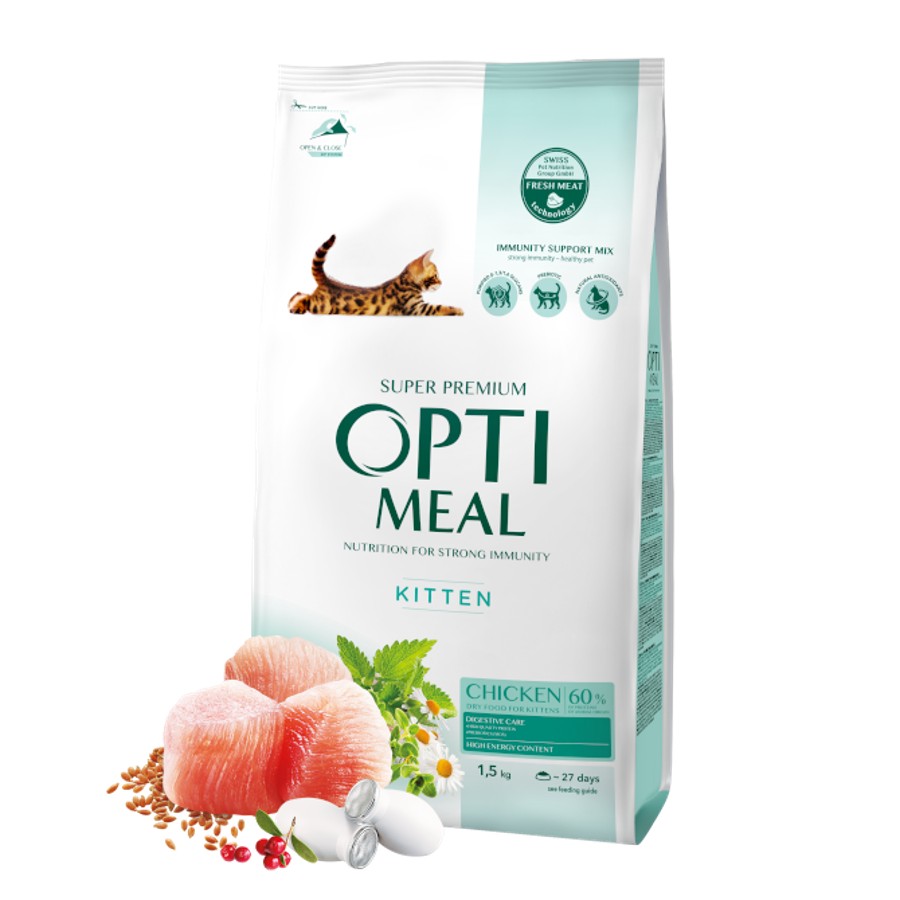 Optimeal cat kitten with CHICKEN 1.5 кг - Храна за котенца с Пилешко